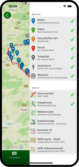 Planen Sie ihre Route entlang der innerdeutschen Grenze. Mit interaktiven Karten, Offline-Funktion, Wegpunkten und historischen Ansichten